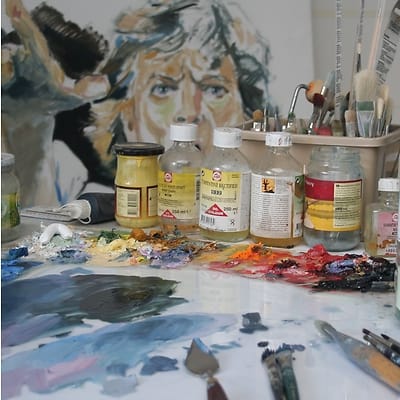 Als het schilderij voltooid en droog is kun je het ophalen.